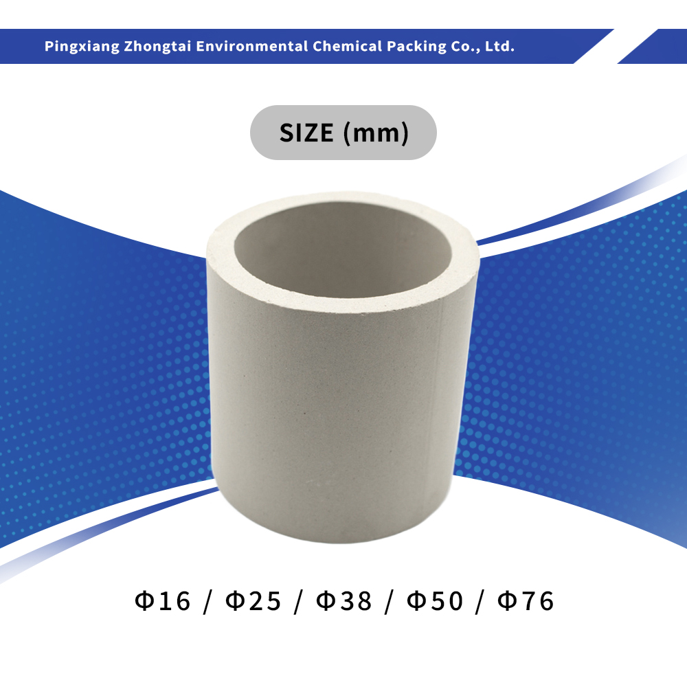 Ceramic raschig ring is one of the earliest developed random packing, the structure is simple, the height and diameter are the same. Raschig rings large size (100mm or more) means the general rules by filling the entire puzzle, 90mm size raschig rings generally use the following method loading number.